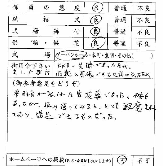参列者が限られた家族葬であった。不安もあったが、振り返ってみると、とても配慮されており、満足できるものだった。